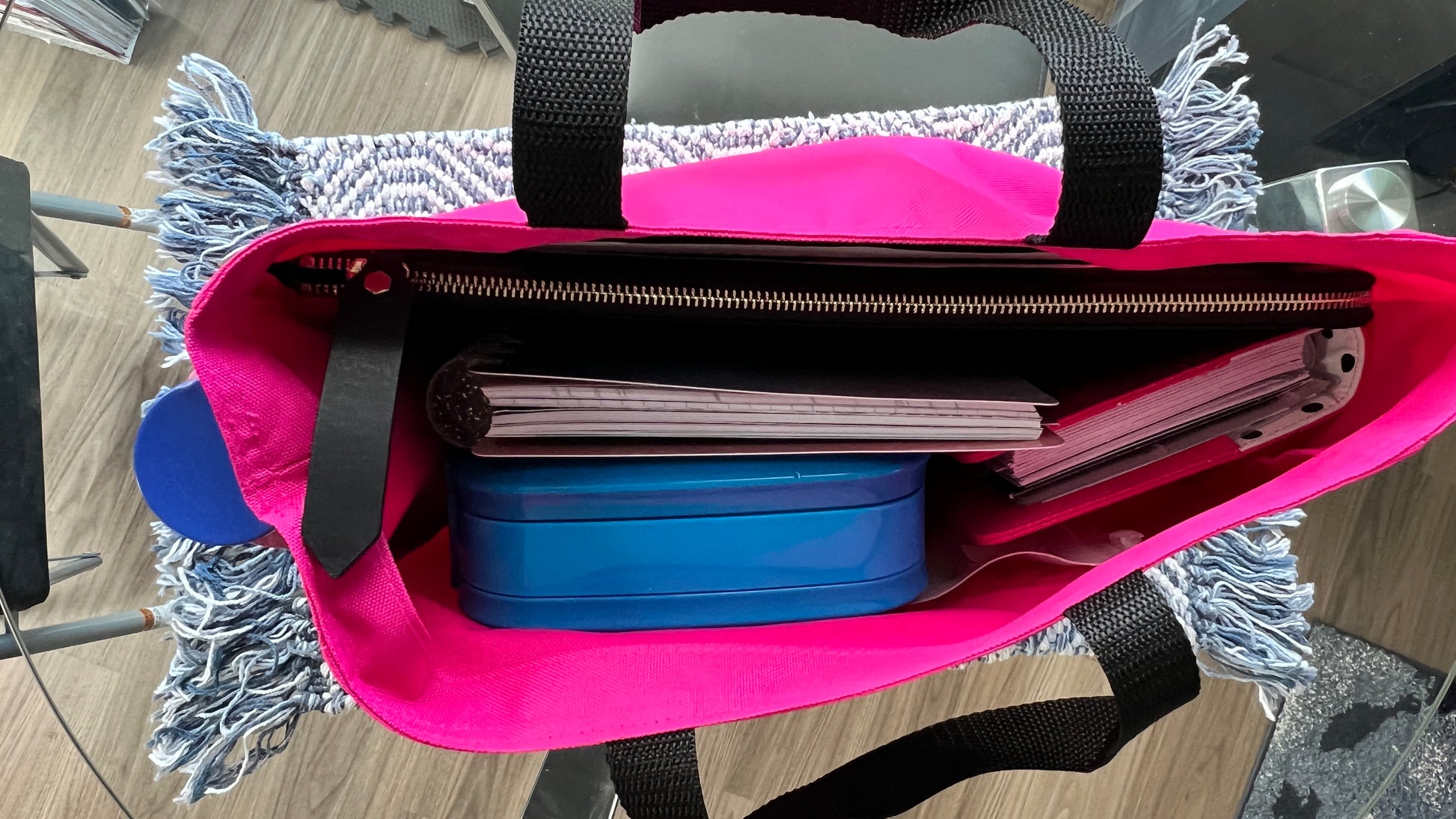 Bright, bold, and impossible to ignore, this tropical pink tote adds color while keeping everything you need close at hand — from planners and notebooks to snacks, travel essentials, or everyday must-haves.